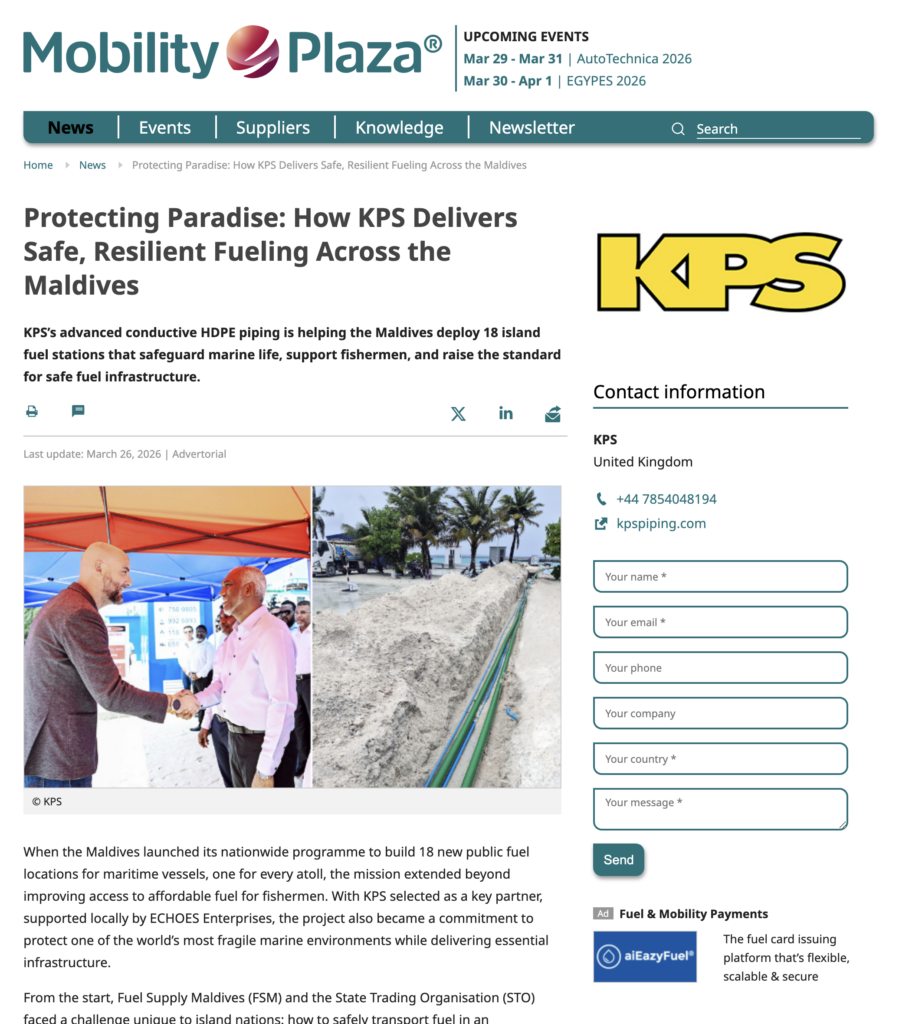 Maldives’ FSM & STO 18 site public build programme specifies KPS Piping